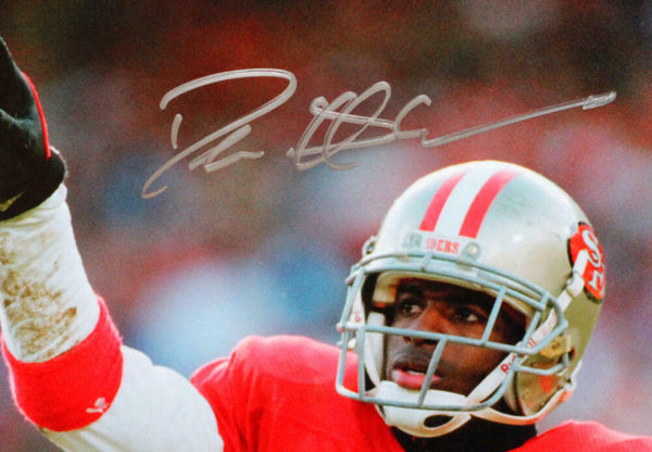 Deion Sanders Autographed 49ers 8x10 Pointing Up HM Photo - Beckett W *Silver This is a hand autographed 8x10 Highland Mint Photo of Deion Sanders of the San Francisco 49ers. This item has a Beckett Witnessed Authentication, which comes with a numbered sticker and a matching Certificate of Authenticity. You can view this item on the Beckett Authentication website and it shows when and where the item was signed It was signed either at a public autograph appearance or a private signing. This is a stock photo of the item. Although you may not receive this exact item, the item you receive is virtually identical and brand new in great shape.