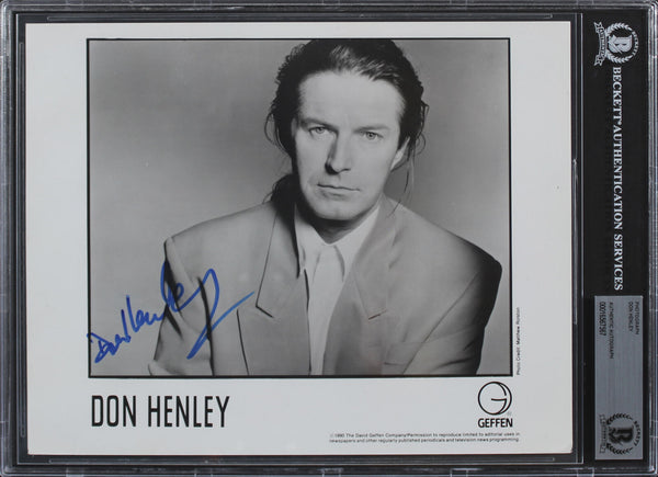 This Autographed 8x10 Photo has been Personally Signed by Don Henley of The Eagles. This item is 100% Authentic, it comes slabbed and authenticated by Beckett Authentication Services. The authenticity can be verified on Beckett Authentication Services website.
