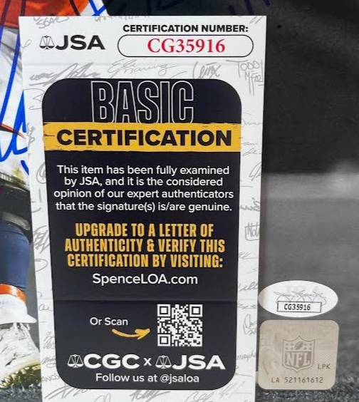 The product is an autographed 8x10 photo of Denver Broncos football player Garett Bolles, inscribed with the message "Live Your Dream." The signature is authenticated by James Spence Authentication (JSA), ensuring its legitimacy. This original photo is a must-have for fans of the Denver Broncos and collectors of sports memorabilia, offering a unique and valuable piece of football history.