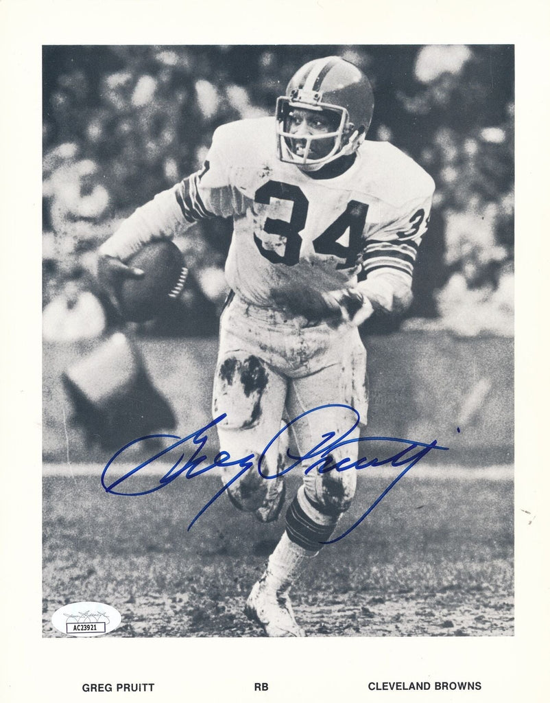 Greg Pruitt Autographed 8x10 Photo Cleveland Browns. This photo is authenticated by JSA and includes their tamper-proof hologram sticker and Certificate of Authenticity.