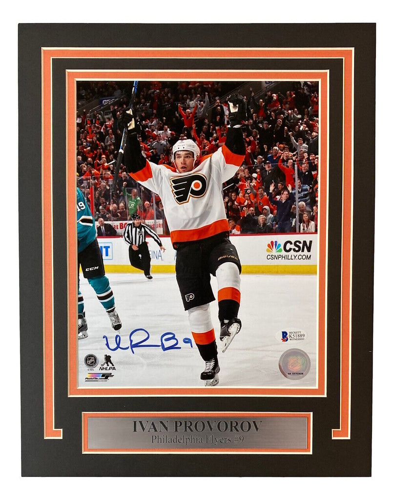 Featured is an Ivan Provorov signed 8x10 Philadelphia Flyers photo. This photo has been hand signed by Provorov and comes with the Beckett witnessed hologram and certificate of authenticity. This photo has been professionally matted with an engraved nameplate and is approximately 11x14. This photo would make a great addition to any sports memorabilia collection! SPECIFICATIONS Autographed By: Ivan Provorov Team: Philadelphia Flyers Sport: Hockey Authentication: Beckett Grading Services
