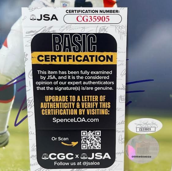 The product is an autographed 8x10 photo of Denver Broncos football player Jake Plummer, with the inscription "16". The autograph is authenticated by James Spence Authentication (JSA) and the photo is an original piece. This collectible item would be a must-have for fans of the Denver Broncos or Jake Plummer, adding a unique touch with the personalized inscription and authentication.