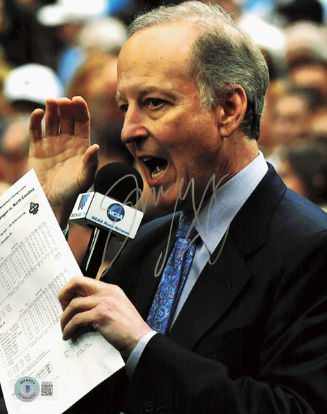 This is an 8x10 Photo that has been hand signed by Jim Gray. This item has been certified authentic by Beckett Authentication (BAS) and comes with their tamper-proof QR Code hologram that can be verified on the Beckett-authentication.com.