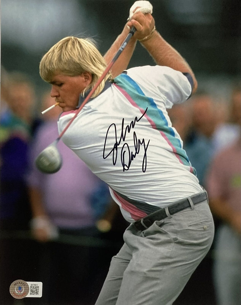 Featured is a John Daly signed 8x10 photo. This photo has been hand signed by Daly and comes with the Beckett hologram and certificate of authenticity. This photo would make a great addition to any sports memorabilia collection! SPECIFICATIONS Autographed By: Team: Sport: Golf-PGA Authentication: Beckett Grading Services