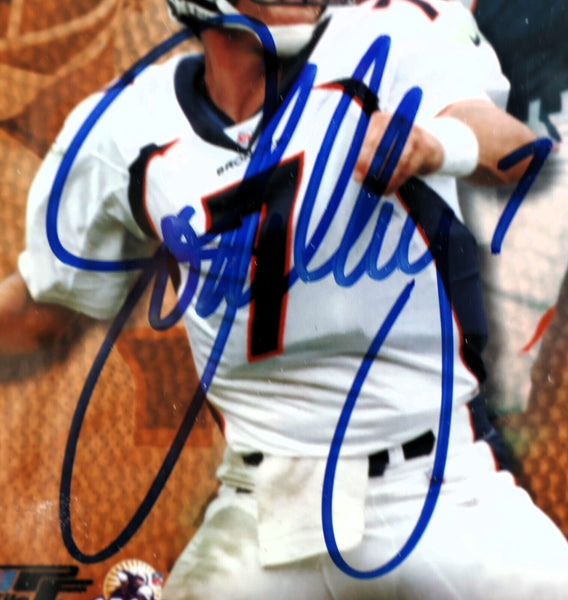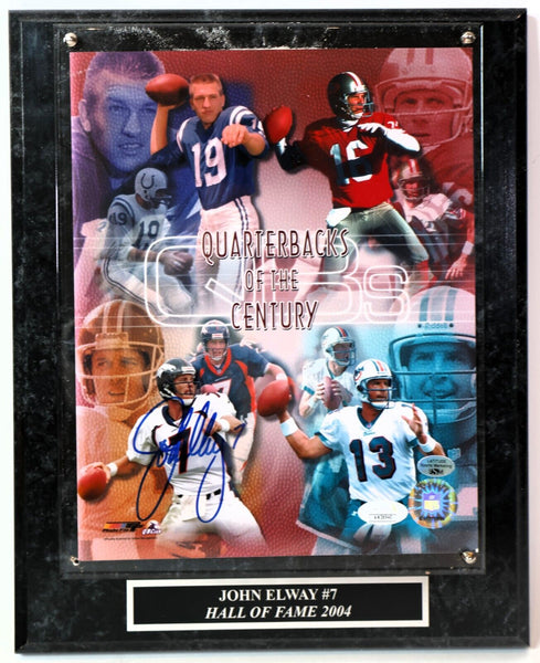 Capture a piece of football history with this exclusive John Elway autographed 8x10 photo, commemorating the legendary quarterback's tenure with the Denver Broncos. This original photograph, signed by Elway himself, comes with a plaque and is authenticated by James Spence Authentication (JSA), ensuring its legitimacy and value to collectors. For fans of the sport or collectors of memorabilia, this item is a must-have. It's a rare opportunity to own a piece of Elway's storied legacy, complete with a Certificate of Authenticity from JSA, providing you with confidence in the authenticity of your purchase.
