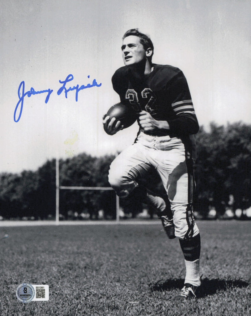 This is an 8x10 Photo that has been hand signed by Johnny Lujack. This item has been certified authentic by Beckett Authentication (BAS) and comes with their tamper-proof QR Code hologram.