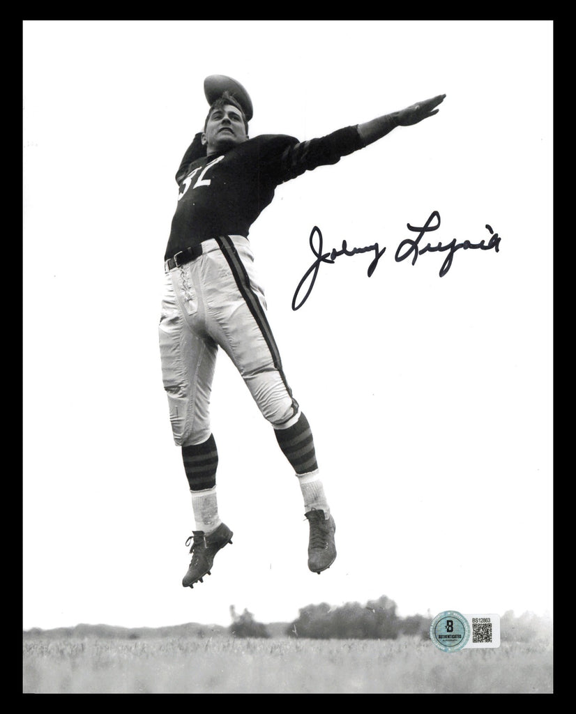 This is an 8x10 Photo that has been hand signed by Johnny Lujack. This item has been certified authentic by Beckett Authentication (BAS) and comes with their tamper-proof QR Code hologram.