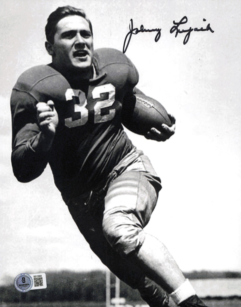 This is an 8x10 Photo that has been hand signed by Johnny Lujack. This item has been certified authentic by Beckett Authentication (BAS) and comes with their tamper-proof QR Code hologram.