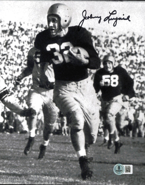 This is an 8x10 Photo that has been hand signed by Johnny Lujack. This item has been certified authentic by Beckett Authentication (BAS) and comes with their tamper-proof QR Code hologram.