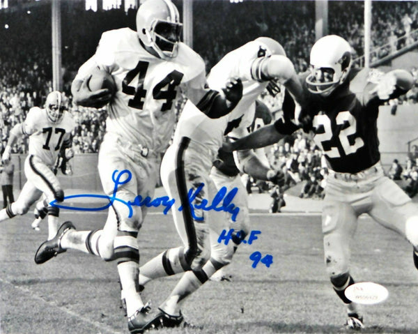 This is a hand autographed 8x10 Photo of Leroy Kelly of The Cleveland Browns. This item has a James Spence Witness Authentication, which comes with a JSA numbered sticker and a matching JSA COA. You can view this item on the SpenceLOA website and it shows when and where the item was signed. It was signed either at a public autograph appearance or a Private Signing. This is a stock photo of the item. Although you may not receive this exact item, the item you receive is virtually identical and brand new in great shape. This is a hand autographed 8x10 Photo of Leroy Kelly of The Cleveland Browns. This item has a James Spence Witness Authentication, which comes with a JSA numbered sticker and a matching JSA COA. You can view this item on the SpenceLOA website and it shows when and where the item was signed. It was signed either at a public autograph appearance or a Private Signing. This is a stock photo of the item. Although you may not receive this exact item, the item you receive is virtually identical and brand new in great shape.