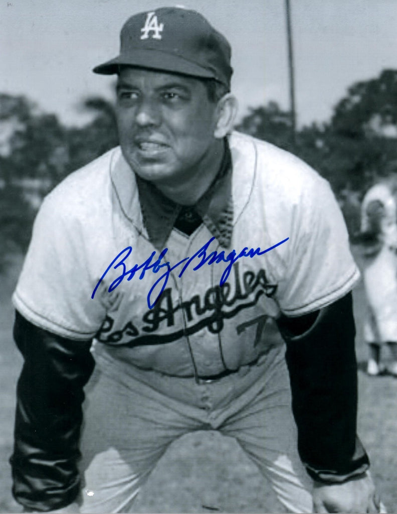 An 8x10 hand signed photo of former Los Angeles Dodgers players BOBBY BRAGAN (deceased). The signature is Mint in BLUE sharpie and BRAGAN was a member of the Dodgers as a player and as a coach. This photo was signed at a private signing in 2010. This would make a great addition to any DODGERS collection! This item is guaranteed to be 100% authentic and will include a store COA.