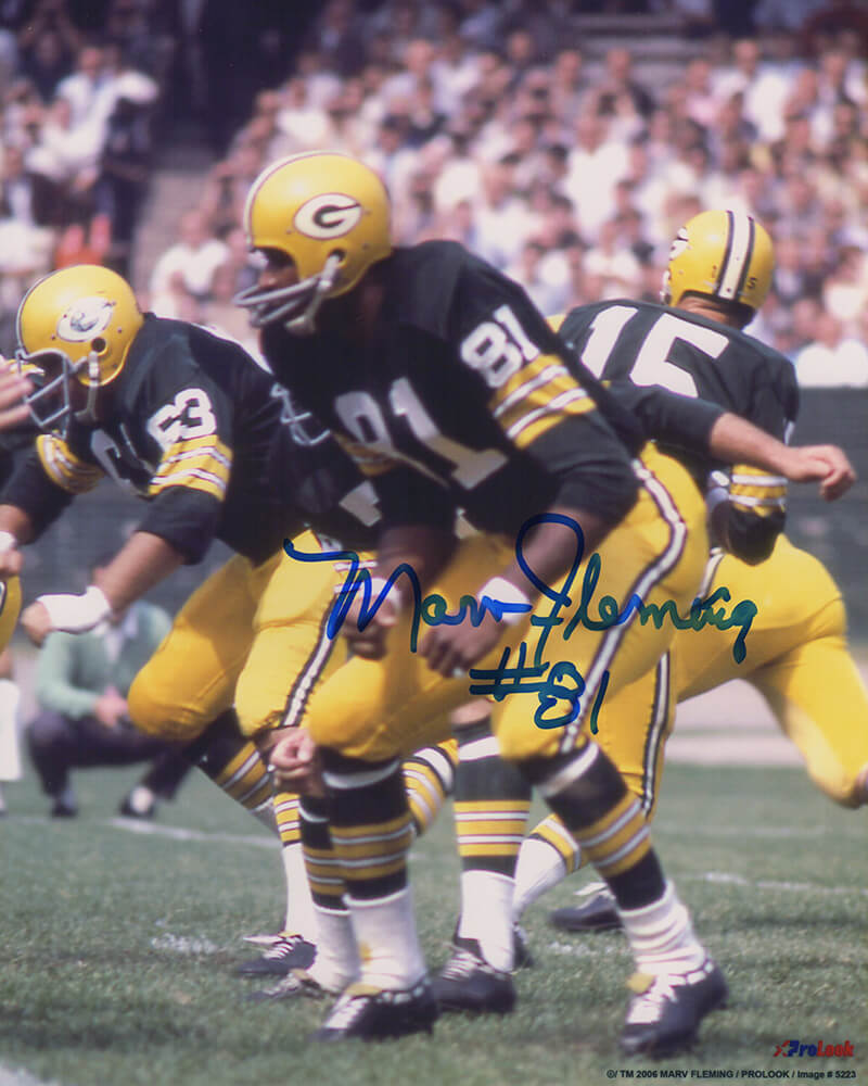 Marv Fleming signed Green Bay Packers green jersey action 8x10 photo. Item comes with a Schwartz Sports Memorabilia tamper-proof numbered hologram and Certificate of Authenticity which can be verified online.