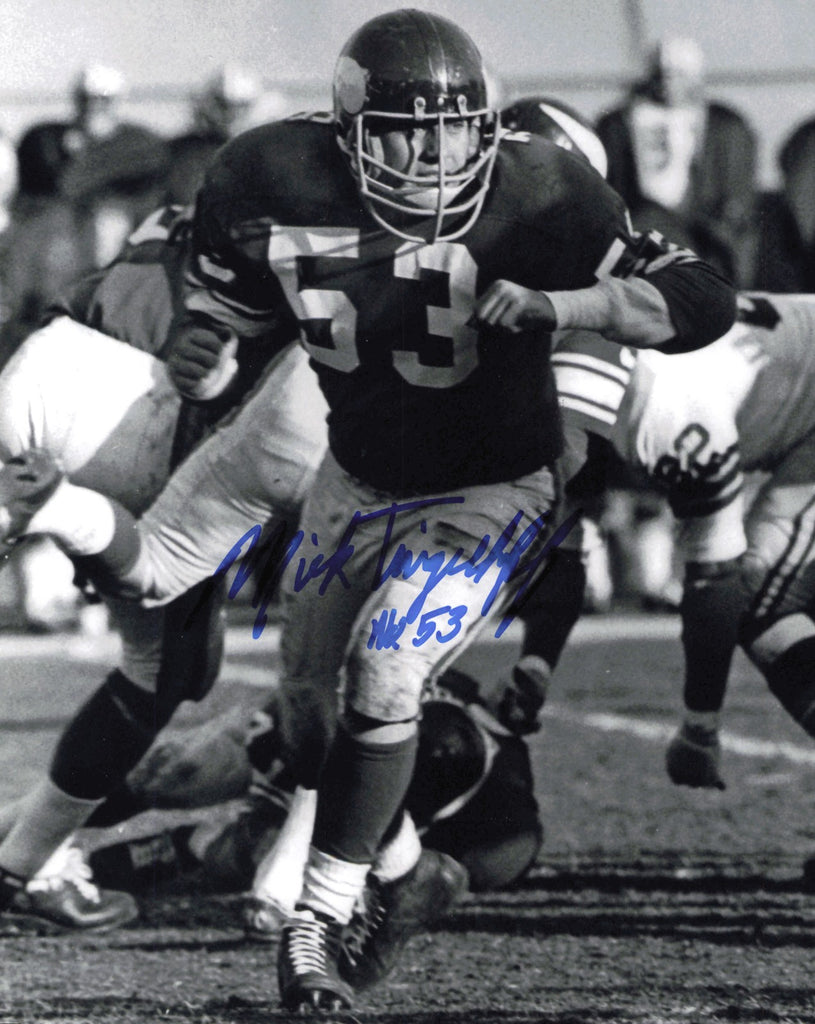 This is an 8x10 Photo that has been hand signed by Mick Tingelhoff. This item is guaranteed to pass any third party authentication company including Beckett, PSA/DNA, & JSA authentication.