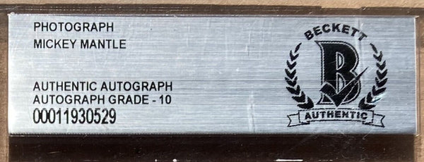 Featured is a Mickey Mantle signed 8x10 New York Yankees photo. This photo has been hand signed by Mantle and has been slabbed and authenticated by Beckett, receiving an autograph grade of 10. This photo would make a great addition to any sports memorabilia collection! SPECIFICATIONS Autographed By: Mickey Mantle Team: New York Yankees Sport: Baseball Authentication: Beckett Grading Services