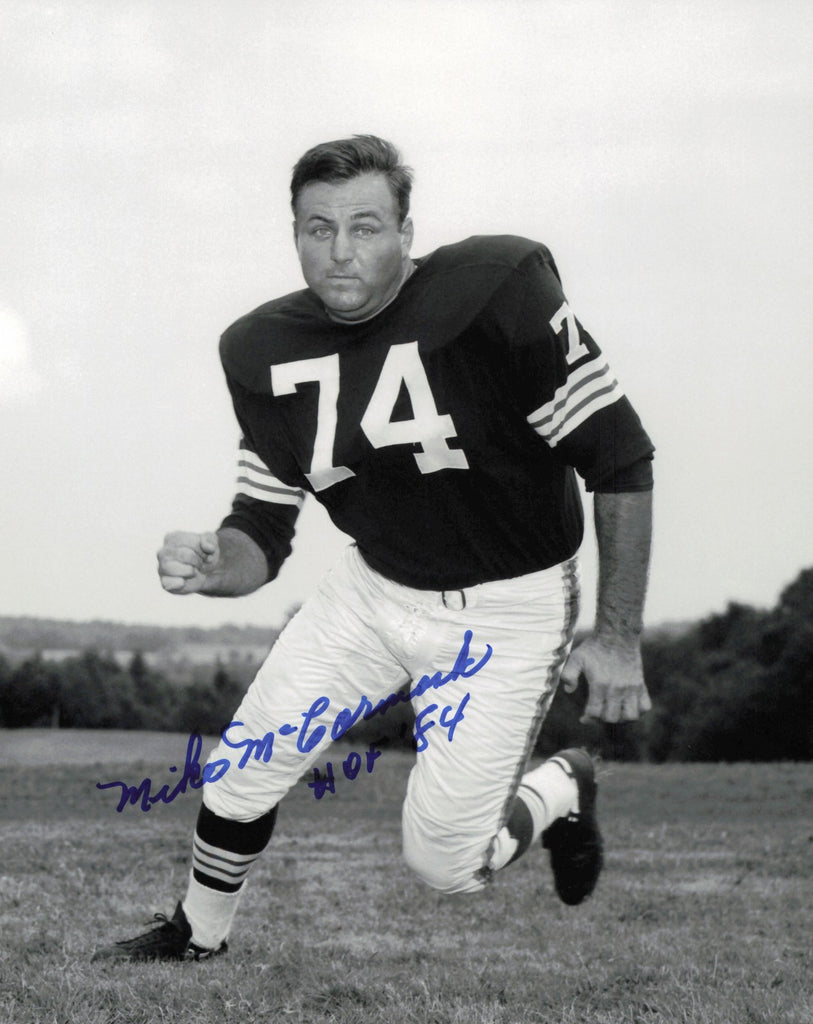 This is an 8x10 Photo that has been hand signed by Mike McCormack. This item was inscribed "HOF 84." This item is guaranteed to pass any third party authentication company including Beckett, PSA/DNA, & JSA authentication.