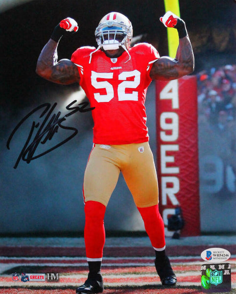 Patrick Willis Signed San Francisco 49ers Flexing 8x10 HM Photo- Beckett W *Blk This is a Patrick Willis of The San Francisco 49ers hand autographed 8x10 HM photo. This item has a Beckett Witnessed Authentication, which comes with a numbered and a matching Certificate of Authenticity. You can view this item on the Beckett website, it shows when and where the item was signed. It was signed either at a public autograph appearance or a private signing. This is a stock photo of the item. Although you may not receive this exact item, the item you receive is virtually identical, brand new, and in great shape.