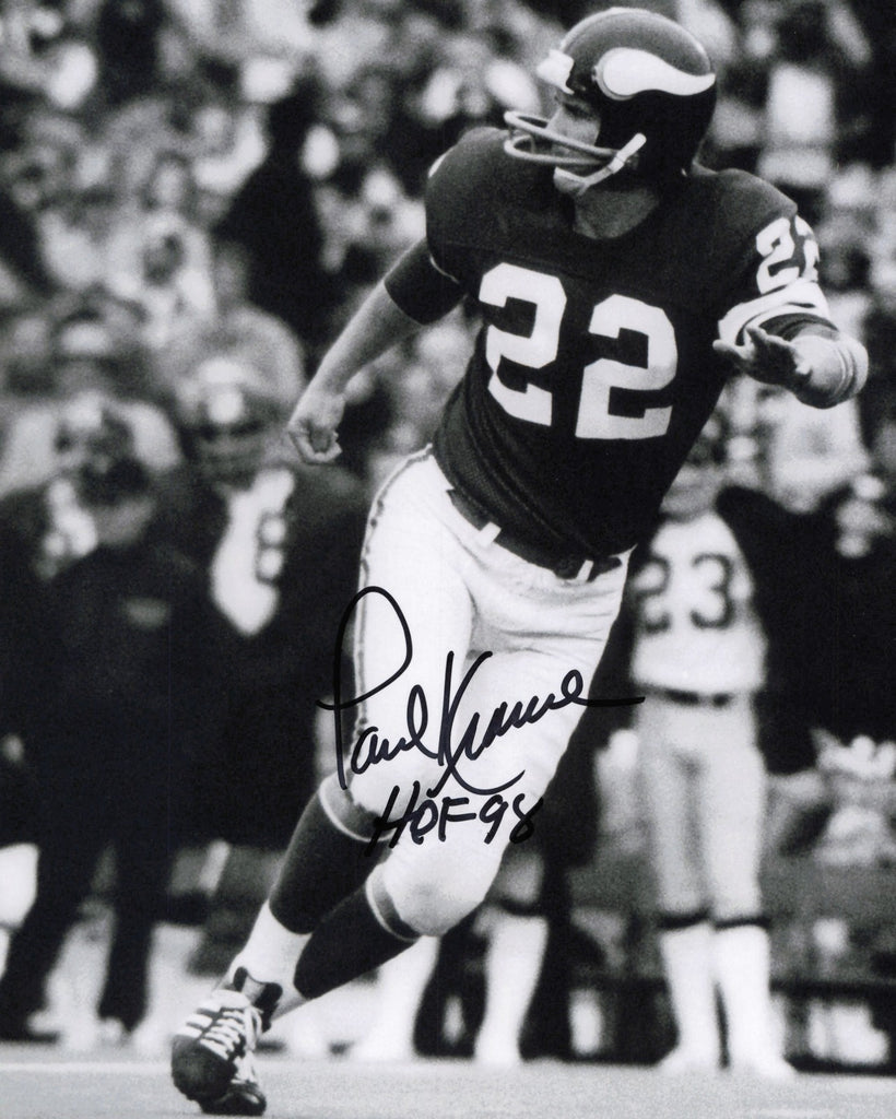 This is an 8x10 Photo that has been hand signed by Paul Krause. This item was inscribed "HOF 98." This item is guaranteed to pass any third party authentication company including Beckett, PSA/DNA, & JSA authentication.
