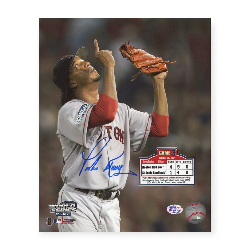 This 8x10 photograph has been personally hand signed by Pedro Martinez of the Boston Red Sox100% Authentic Certificate of authenticity by Sure Shot Promotions
