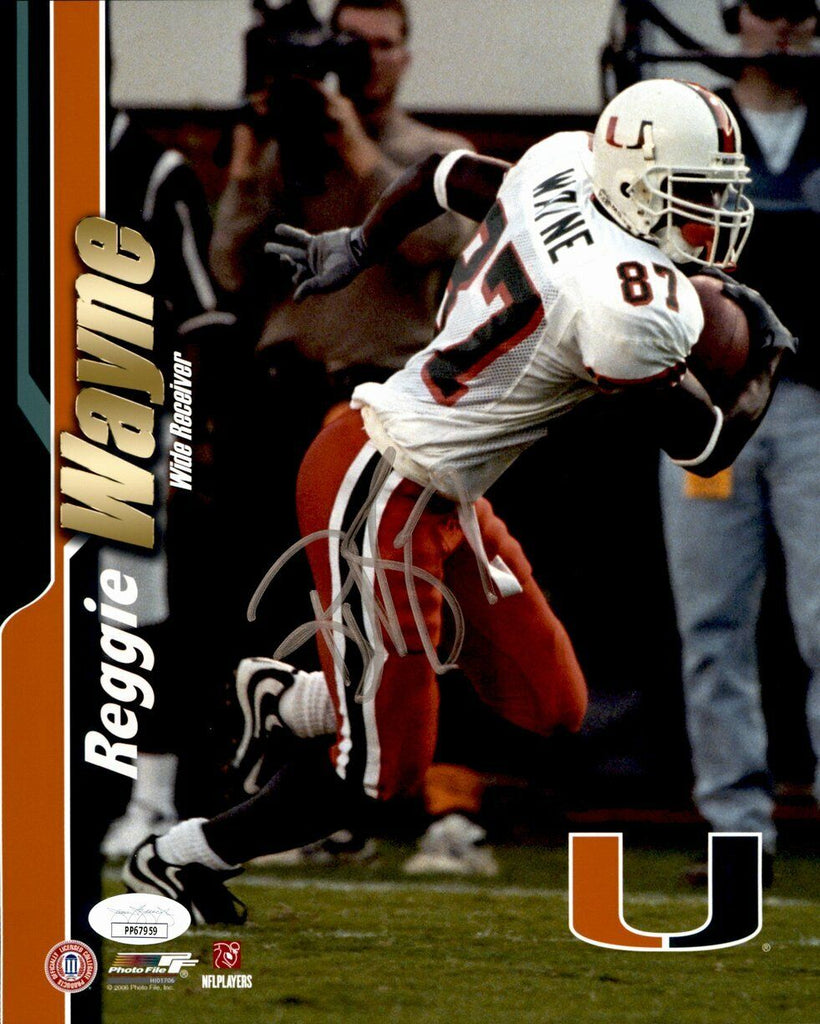 Reggie wayne miami hurricanes signed/autographed 8x10 jsa this photo is authenticated by jsa and includes their tamper-proof sticker and certificate of authenticity.