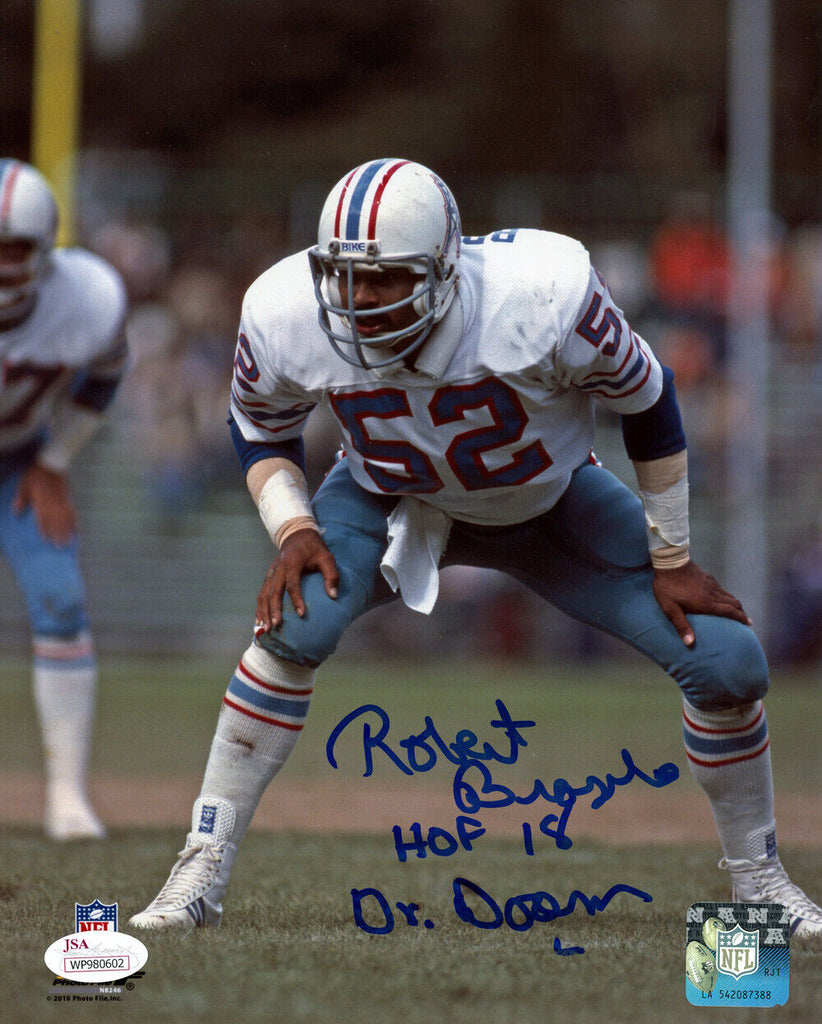 The number in the listing title is just an inventory sku for our records and is not the authentication number. This is the exact item that you will receive so please see pictures for condition. This is an 8x10 photo that was personally autographed by Robert Brazile with HOF and Dr. Doom inscriptions. Includes a certificate of authenticity from James Spence Authentication (JSA) and Denver Autographs.FREE SHIPPING within the USA on orders over $10!