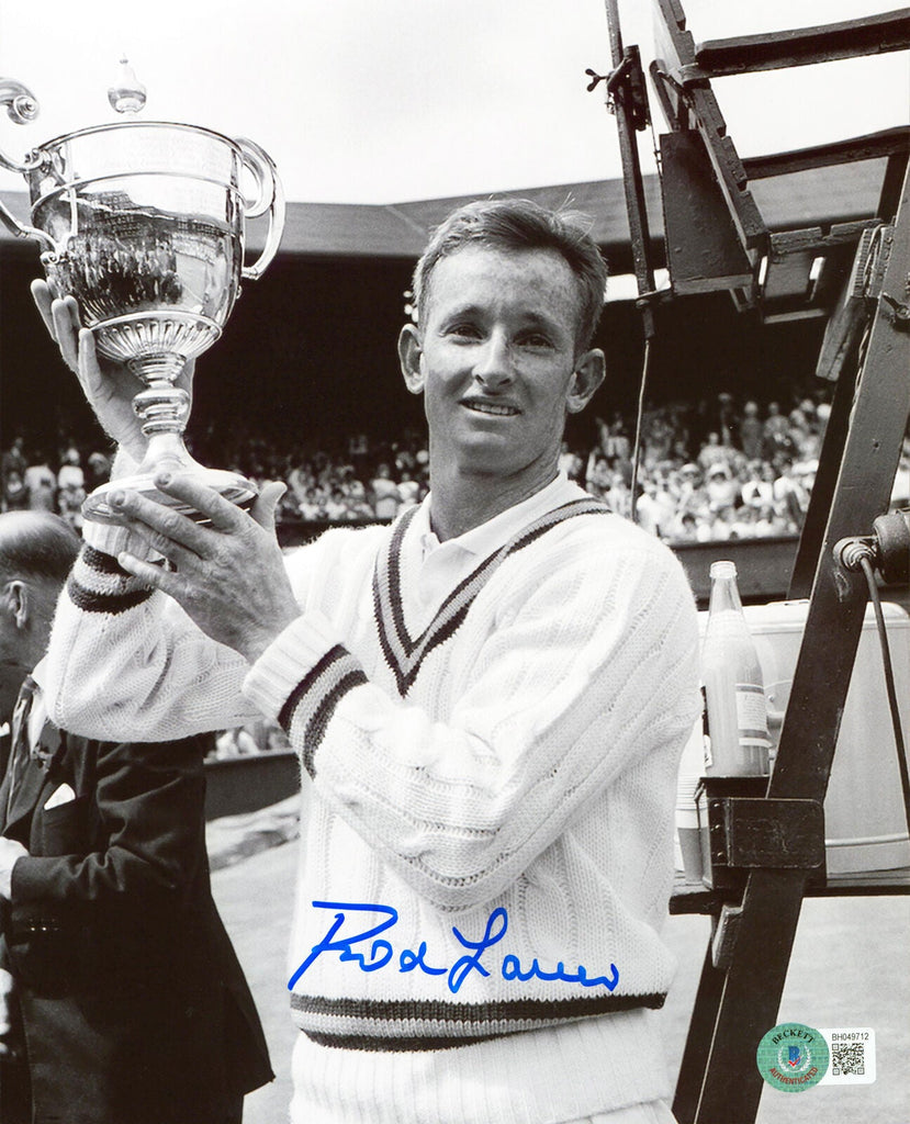 This Autographed 8x10 Black & White Photo has been Personally Signed by Rod Laver. This item is 100% Authentic to include a hologram by Beckett Authentication Services. This item will come with an affixed Beckett Authentication Services (BAS) authentication sticker, which includes a scannable QR code to verify authenticity. Please note that Beckett no longer provides serial-numbered COA cards, and the attached BAS sticker will serve as the complete authentication for this item. The authenticity can be verified on Beckett Authentication Services website.