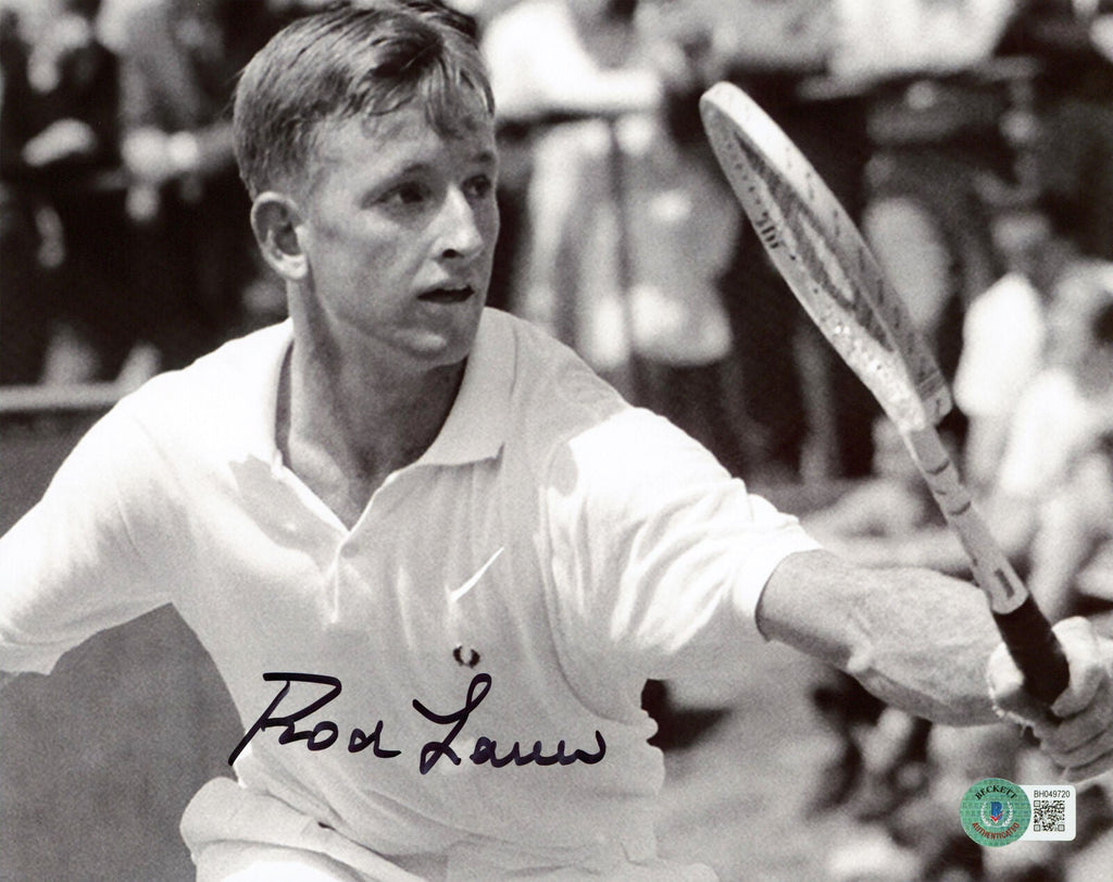 This Autographed 8x10 Black & White Photo has been Personally Signed by Rod Laver. This item is 100% Authentic to include a hologram by Beckett Authentication Services. This item will come with an affixed Beckett Authentication Services (BAS) authentication sticker, which includes a scannable QR code to verify authenticity. Please note that Beckett no longer provides serial-numbered COA cards, and the attached BAS sticker will serve as the complete authentication for this item. The authenticity can be verified on Beckett Authentication Services website.