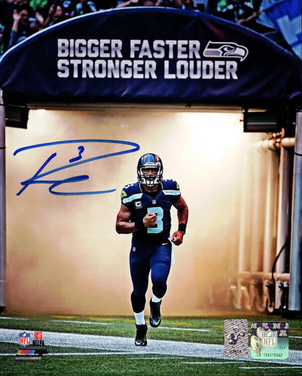 This is an 8x10 Photo that has been hand signed by Russell Wilson. This item has the official tamper-proof Russell Wilson serial numbered hologram and matching certificate of authenticity.