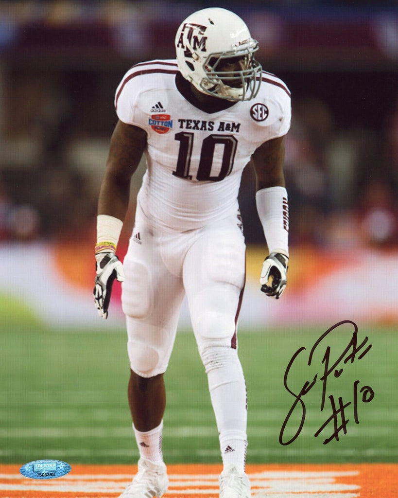 Sean Porter, former star linebacker for the Texas A&M Aggies, has hand signed this 8x10 photo at a private signing. This item comes with a serial-numbered hologram from Tristar, one of the leaders in the industry. The authenticity can be verified online by entering the serial number. A Tristar information card is also included.Item pictured may not be the exact item you will receive. It will be similar quality, and we guarantee your satisfaction.