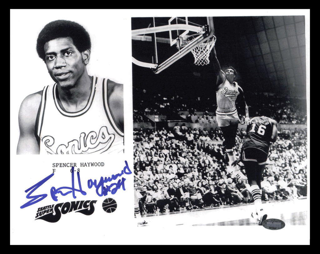 This is an 8x10 Photo that has been hand signed by Spencer Haywood. This item was signed in the presence of a Mill Creek Sports representative and comes with their serial numbered hologram and matching certificate of authenticity.