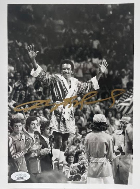Own a Piece of Boxing History This authentic Sugar Ray Leonard autographed 8x10 photograph captures the legendary boxer in his prime. Known as one of the greatest welterweight champions of all time, Sugar Ray Leonard's signature on this premium quality photo makes it a must-have collectible for boxing enthusiasts and sports memorabilia collectors. Product Features: Authentic autograph from boxing legend Sugar Ray Leonard Professional 8x10 inch photograph - perfect for framing High-quality print on premium photo paper Ready to display in your home, office, or sports room Collectible investment piece that appreciates over time Sugar Ray Leonard dominated the boxing world in the 1980s, winning world titles in five different weight divisions. This signed photograph commemorates his incredible career and makes an exceptional gift for boxing fans or a prestigious addition to any sports memorabilia collection. Perfect for framing and display in your home, office, or man cave. A conversation starter that celebrates one of boxing's greatest champions.