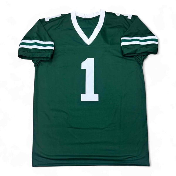 This signed item is brand new without tags or logos. This custom jersey is sewn in a size Large / XL. All the letters and numbers are sewn on! This item will make a great gift or a great addition to any collection at an AFFORDABLE PRICE! ATHLETE: Ahmad Sauce Gardner ITEM: Custom Sewn Jersey AUTHENTICATION: This item comes with a Beckett Authentication serial #'ed hologram affixed to the item. To ensure authenticity, the hologram can be reviewed online. This process helps to ensure that the product purchased is authentic and eliminates any possibility of duplication or fraud. NOTE: All of our autographed jerseys are custom jerseys, unless otherwise noted. Our custom jerseys are NON-BRANDED, have NO logos, NO tags, NO patches, NO emblems. All letters and numbers are SEWN-ON. The non-branded jerseys are made specifically for the player(s) to sign, for collectible purposes.