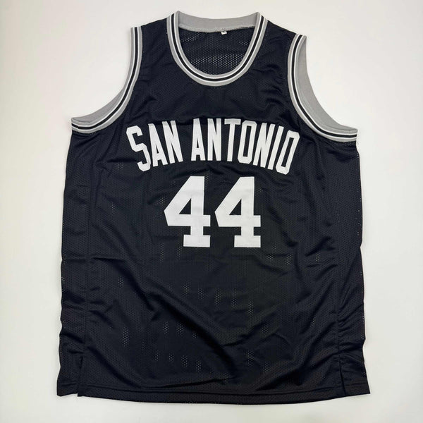 Autographed/Signed George Gervin San Antonio Black Jersey Beckett BAS COA Jersey has no brand names or logos. This is a custom jersey and was not manufactured by or in any manner associated with any professional sports league or manufacturer. This custom jersey carries no professional sports league designation. The item is intended to be an autographed collectible. The custom jersey displays the name and number of the player. This item in no way is affiliated with or connected to any professional sports organization. Size is XL.