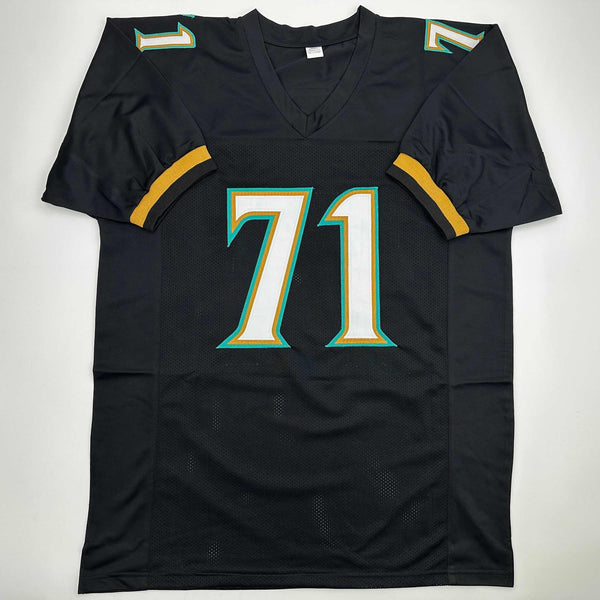 Autographed/Signed Tony Boselli HOF 22 Jacksonville Black Jersey Beckett BAS COA Jersey has no brand names or logos. This is a custom jersey and was not manufactured by or in any manner associated with any professional sports league or manufacturer. This custom jersey carries no professional sports league designation. The item is intended to be an autographed collectible. The custom jersey displays the name and number of the player. This item in no way is affiliated with or connected to any professional sports organization. Size is XL.