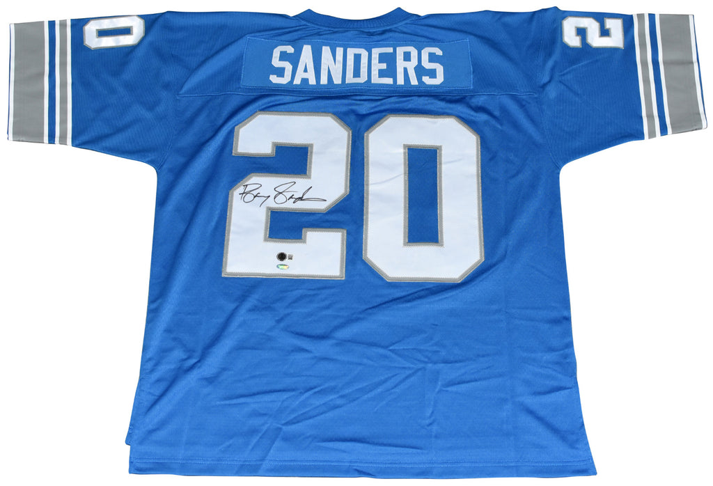 Barry Sanders, former Hall of Fame running back for the Detroit Lions, has hand signed this Mitchell & Ness jersey at a private signing. Jersey is new with tags attached and all letters/numbers are sewn-on. This item is authenticated by Beckett Authentication Services and was signed in the presence of one of their representatives. Their tamper-evident hologram featuring a QR code and serial number is on the item. The authenticity can be verified online by entering the serial number or scanning the QR code.Item pictured may not be the exact item you will receive. It will be similar quality, and we guarantee your satisfaction.