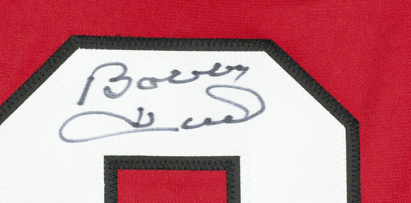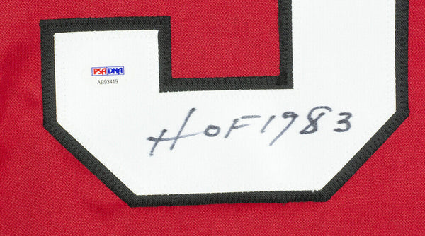 Featured is a Bobby Hull signed custom red hockey jersey in which he added the " HOF 1983 and The Golden Jet" inscription. This jersey was hand signed by Bobby Hull and authenticated by PSA authentication services. Included with the jersey is a PSA hologram and certificate of authentication. This item would make a great addition to any sports memorabilia collection! SPECIFICATIONS Autographed By: Bobby Hull Team: Chicago Blackhawks Sport: Hockey Authentication: Professional Sports Authenticator (PSA)