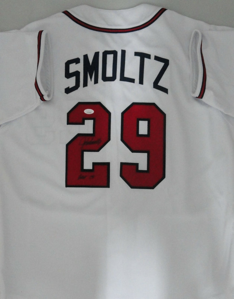 Braves JOHN SMOLTZ Signed Custom Replica Atlanta White Jersey AUTO w/ HOF - JSA