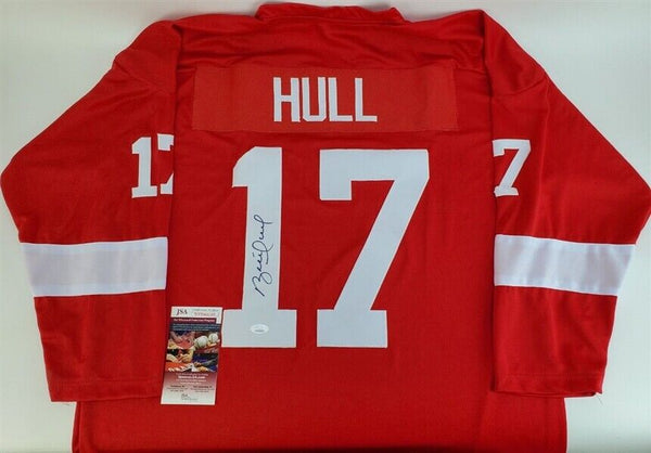 Custom on-ice style jersey. Everything is sewn on, size XL. Hand-signed in black felt-tip pen by Brett Hull (HOF). The lot / autograph(s) includes an official James Spence Authentication (JSA) hologram and matching COA for authenticity purposes. The signing of this item was witnessed by JSA.Authentication: JSA COA