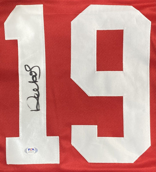 Featured is a Deebo Samuel signed custom football jersey. This jersey was hand signed by Samuel and comes with the PSA/DNA hologram only. This jersey features professionally sewn numbers and letters and is size XL. This jersey has no team tags or emblems and is intended as a sports collectible. SPECIFICATIONS Autographed By: Deebo Samuel Team: San Francisco 49ers Sport: Football Authentication: Professional Sports Authenticator (PSA)