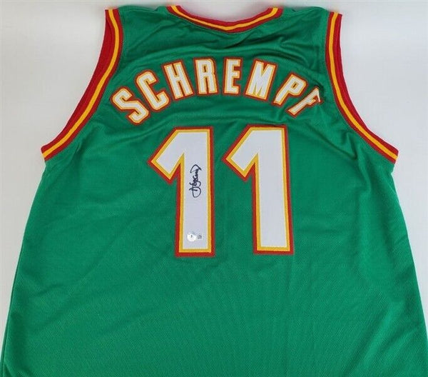 This autographed jersey has been personally hand-signed by Detlef Schrempf of the Seattle Supersonics. This autograph is certified by Beckett Authentication Services (BAS) Witness Certification. That means that a Beckett representative was present when this item was signed. It comes with the numbered authentication hologram with a QR code card that verifies the authentication on the Beckett website.Custom on-field style jerseys are a more affordable option for autograph seekers. These jerseys do not have any brand name or tags and are made in the Philippines. They feature stitched on names and numbers and are made to look very similar to the on-field jerseys that the players wear. These custom jerseys are very commonly used in the memorabilia industry. Shop our ebay store / Friendly Confines Collectibles for thousands of different autographed jerseys