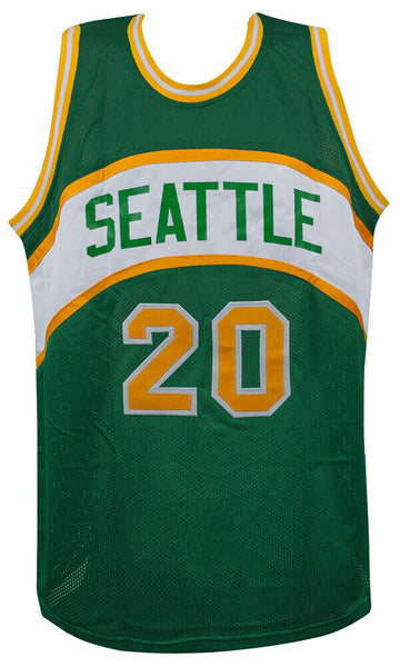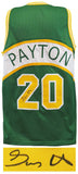 Gary Payton signed green throwback custom basketball jersey. Item comes with a Schwartz Sports Memorabilia tamper-proof numbered hologram and Certificate of Authenticity which can be verified online. Jersey is size XL.
