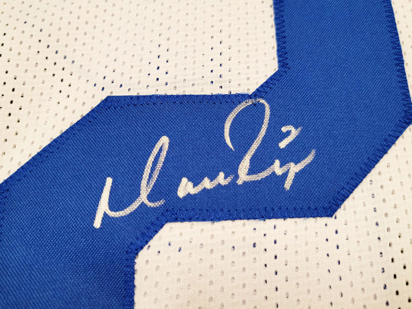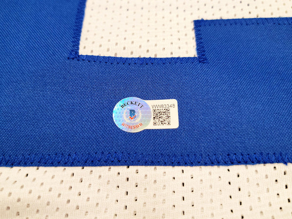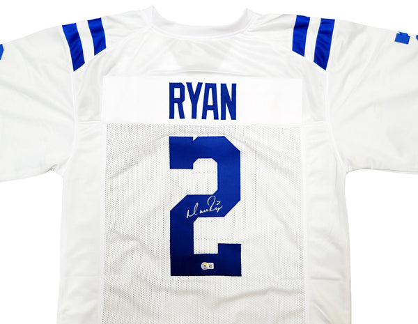This is a White Jersey that has been hand signed by Matt Ryan. This is a custom jersey with no name brand. The approximate size is XL. It has nice sewn in name and numbers. This item has been certified authentic by Beckett Authentication (BAS) and comes with their tamper-proof QR Code sticker that can be verified on the Beckett-authentication.com.