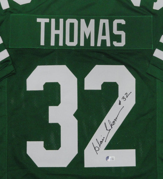 Custom Replica Jersey of New York Jets Running Back BLAIR THOMAS. This jersey is signed with Black sharpie. This jersey is size XL has all letters and numbers sewn in. This item was signed at a private signing with us and would make a great addition to any Jets collection. This item is guaranteed to be 100% authentic and will include a COA hologram from Beckett authentication.