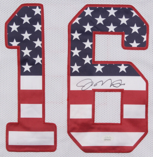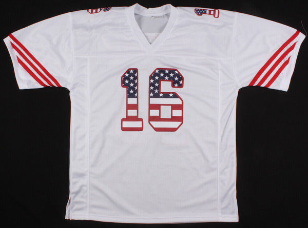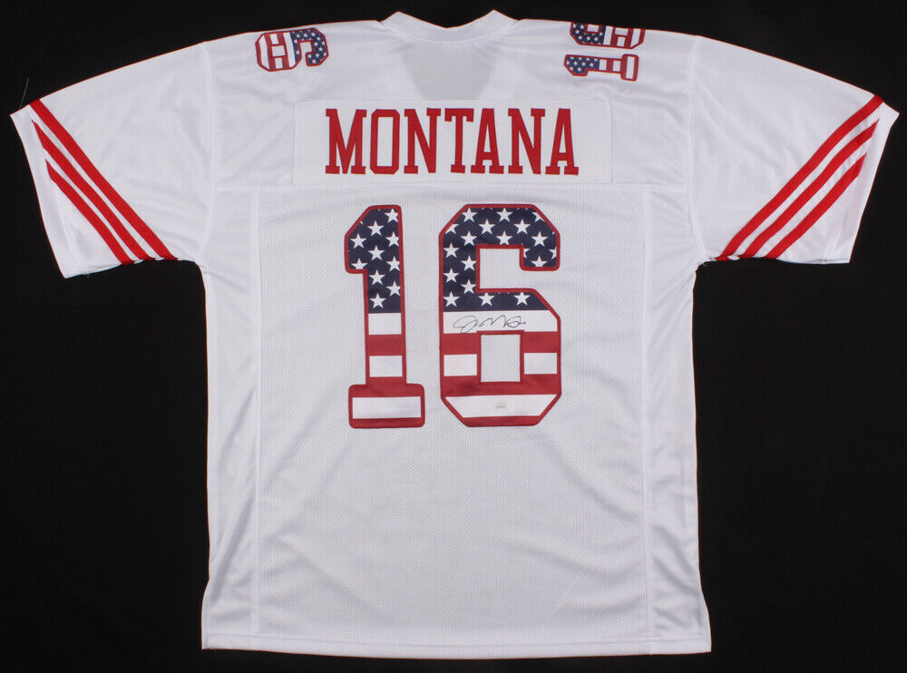Custom on-field style jersey. Everything is sewn on, size XL. Hand-signed in black felt-tip pen by Joe Montana (HOF). The lot / autograph(s) includes an official James Spence Authentication (JSA) hologram and matching COA for authenticity purposes. The signing of this item was witnessed by JSA.Authentication: JSA COA Check out all the items in our Friendly Confines Collectibles store, Thanks for looking.