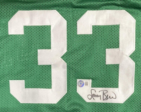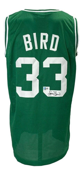 Larry Bird Boston Celtics Autographed Green Jersey Signed jersey of Celtics legend Larry Bird; includes Beckett Hologram of authenticity This basketball jersey has been hand-signed by Celtics legend Larry Bird. It has been authenticated by Beckett.Hand-Signed by Celtics legend Larry BirdSignature is bold and clear on the jerseyAuthenticated with Beckett serially numbered hologram of authenticity