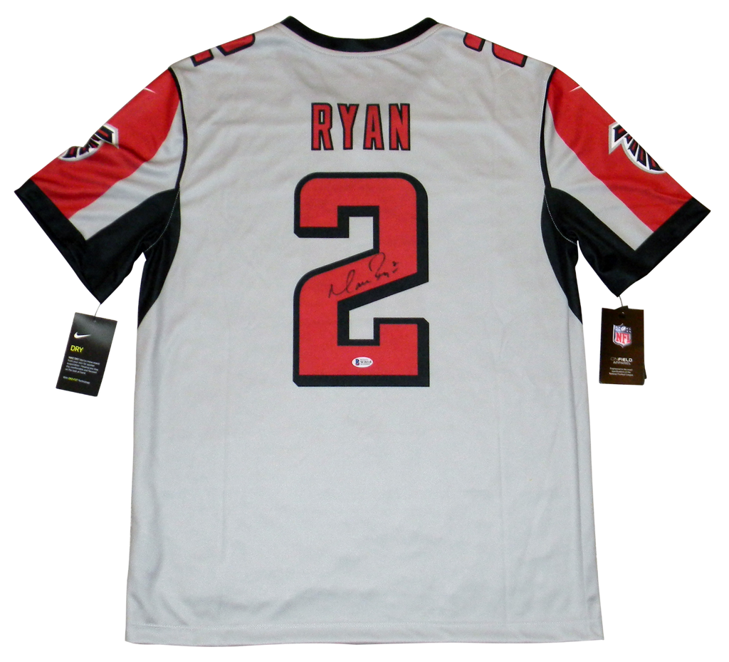 Matt Ryan, Pro Bowl quarterback for the Atlanta Falcons, has hand signed this Nike Inverted Colors jersey at a private signing. Jersey is new with tags attached and all letters/numbers are screen print. This item comes with a certificate of authenticity (COA) from Beckett Authentication Services and was signed in the presence of one of their representatives. You will receive a serial-numbered COA along with a matching serial-numbered sticker on the jersey. The authenticity can be verified online by entering the serial number. Item pictured may not be the exact item you will receive. It will be similar quality, and we guarantee your satisfaction.