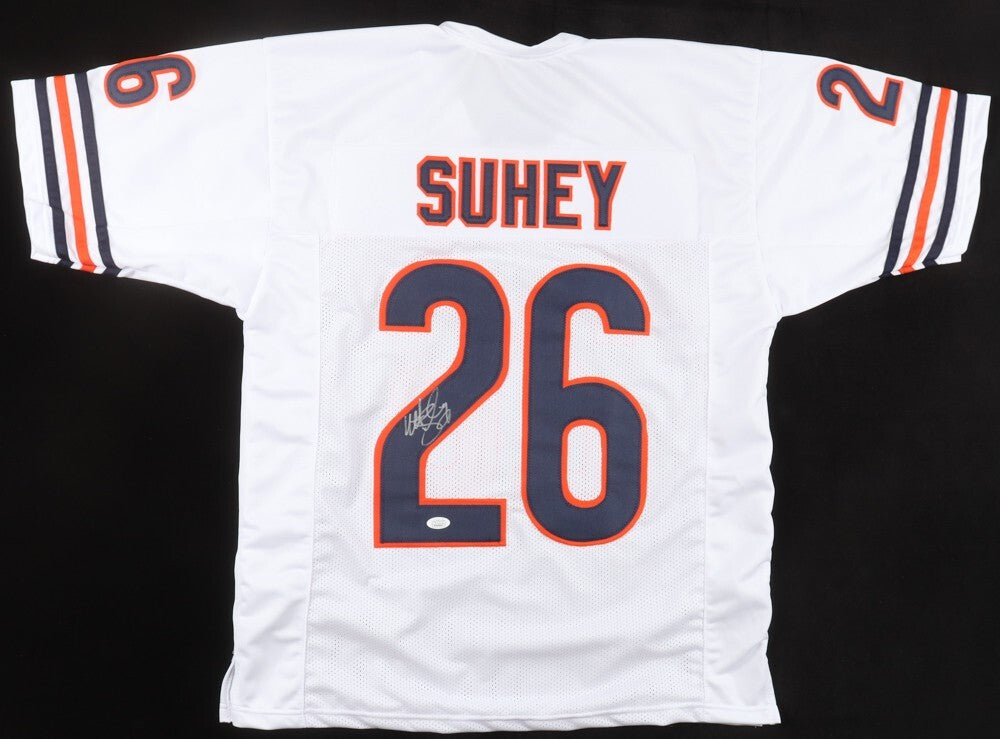 Custom on-field style jersey. Everything sewn on, size XL. Hand-signed in Black Sharpie pen by Matt Suhey. The autograph includes an official James Spence Authentication (JSA) hologram and matching COA for authenticity purposes. Authentication: JSA COA