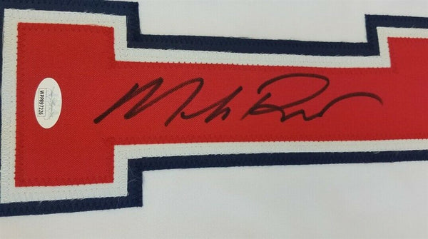 Custom on-ice style jersey. Everything sewn on, size XL. Hand-signed in Black Sharpie by Mike Richter. The lot / autograph(s) includes an official James Spence Authentication (JSA) hologram and matching COA for authenticity purposes. The signing of this item was witnessed by JSA.