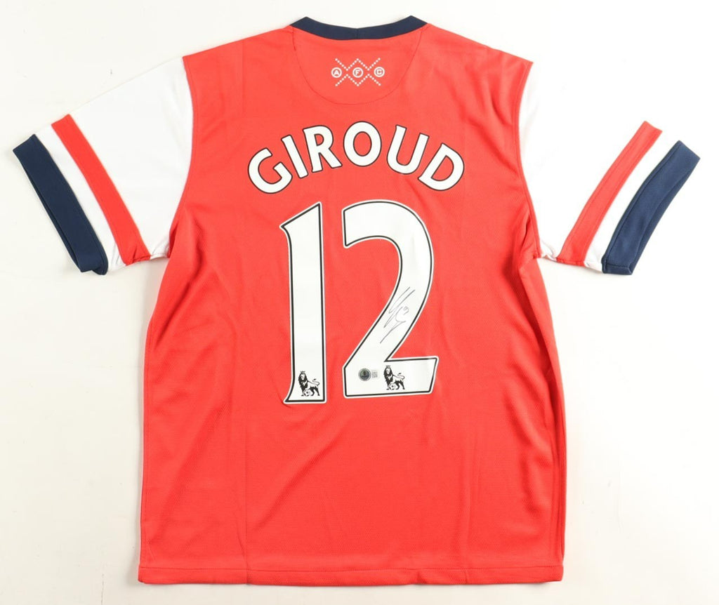 Nike authentic Dri-Fit jersey with everything printed on, size adult Large. Hand-signed by Olivier Giroud.The autograph includes an official Beckett Authentication Services serially numbered hologram and QR Code card for authenticity purposes.Authentication: Beckett Hologram with QR Code card