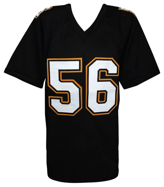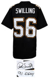 Pat Swilling signed black custom football jersey with '91 DPOY' Inscription. Item comes with a Schwartz Sports Memorabilia tamper-proof numbered hologram and Certificate of Authenticity which can be verified online. Jersey is size XL.