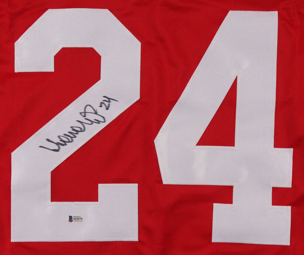 Custom on-ice style jersey. Everything sewn on, size XL. Hand-signed in black felt tip pen by Sergei Makarov (HOF). The lot / autograph(s) includes an official Beckett Authentication Services serially numbered hologram and matching COA for authenticity purposes.Authentication: Beckett COA
